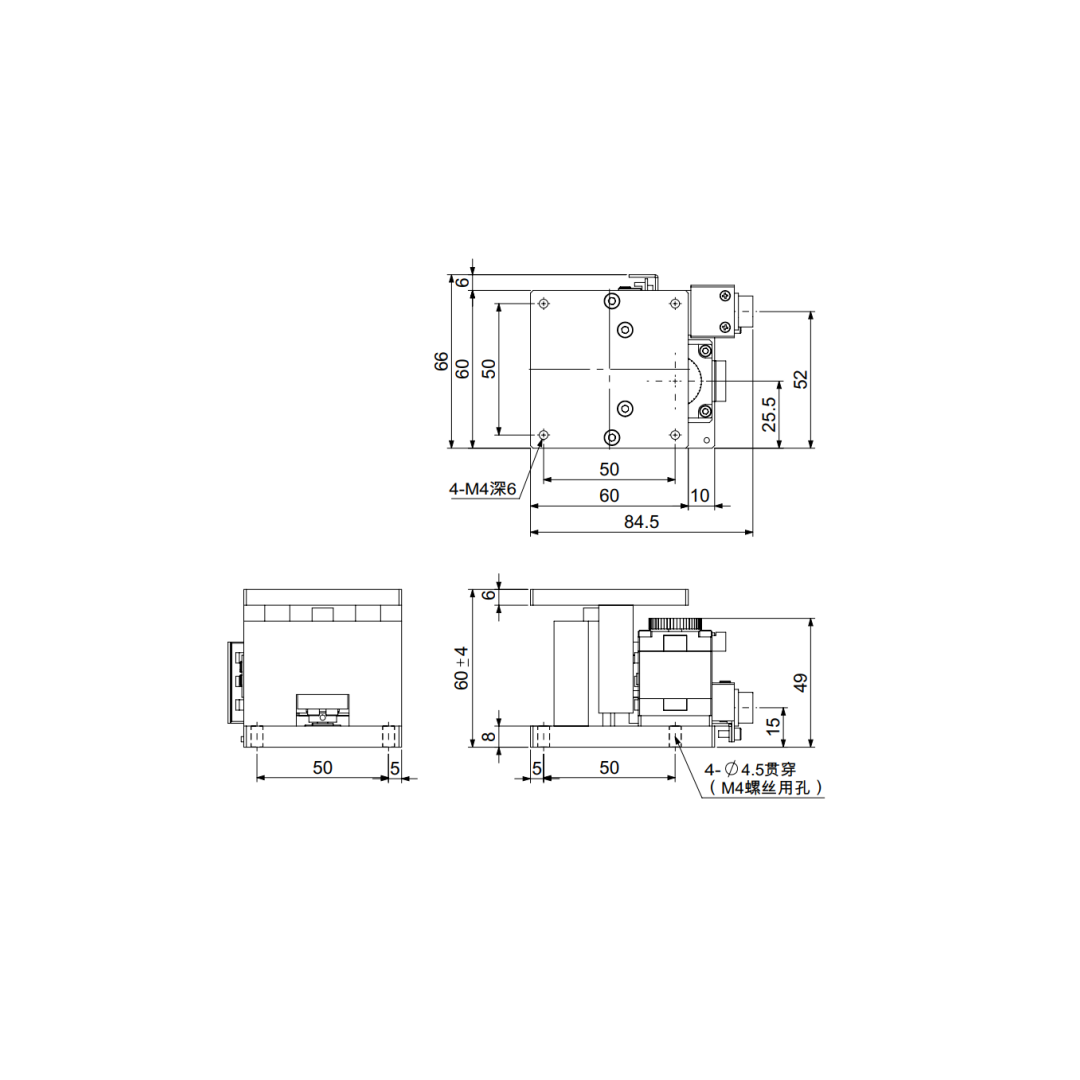 Z6008 Z軸(水平升降)精密電動位移臺,適配高精度科研場景。60×60mm臺面、8mm行程,負(fù)載4kgf、自重0.95kg,易集成安裝。1導(dǎo)程滾珠絲桿搭配直線導(dǎo)軌與28步進(jìn)電機(jī),最大速度10mm/sec,升降平穩(wěn)順滑。采用SUS440C無電解鍍鎳材質(zhì),重復(fù)定位精度達(dá)±5μm,多精度指標(biāo)嚴(yán)格管控,配備原點(diǎn)+限位傳感器,適配各類科研精密操作。